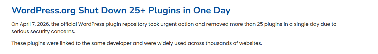 I think you’re taking the wrong lesson if you’re looking at it as a problem for WordPress, specifically. All supply chains of this sort are vulnerable to bad actors…especially bad actors that are able to take over historically known-good projects. This has happened many times in the npm (NodeJS), pypi (Python), and other ecosystems, too. You don’t have to be a WordPress user to worry about supply chain risk.