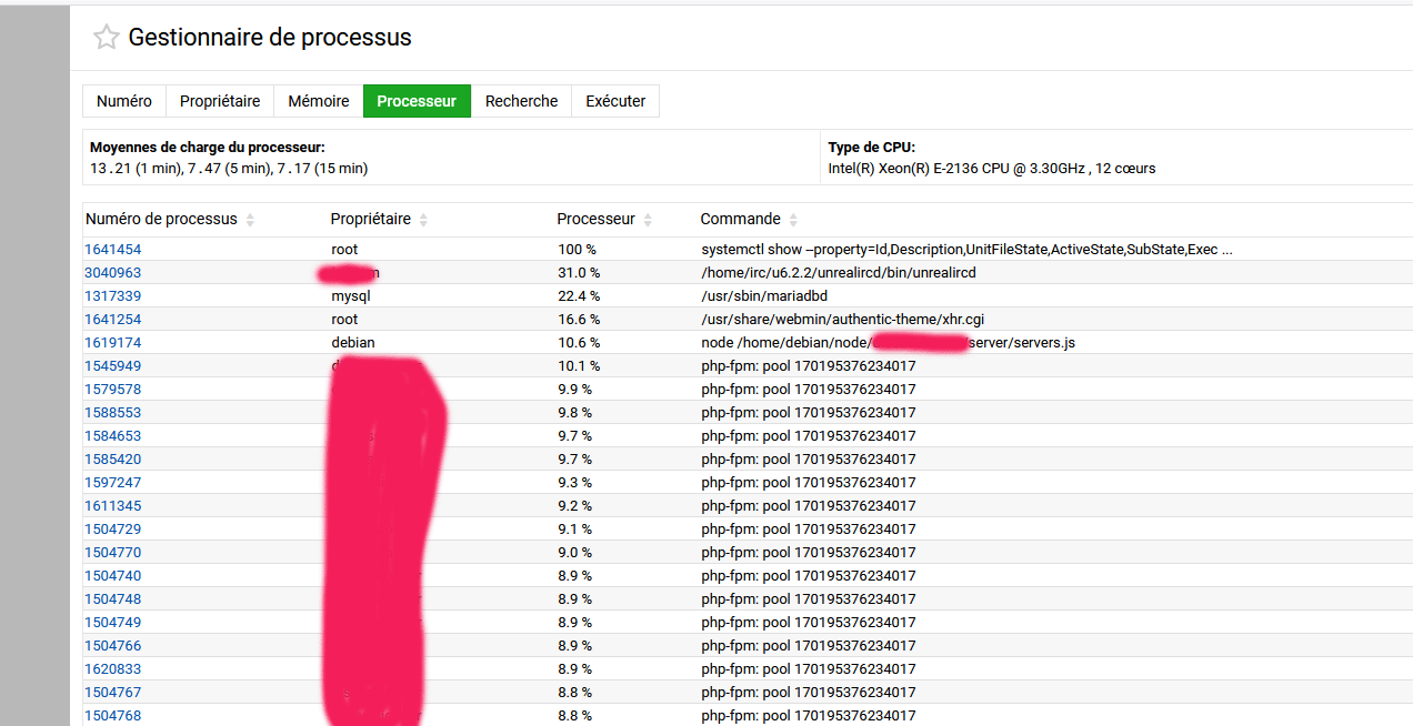 Hi, sometimes when I go on Webmin, the CPU spikes to red at around 90–100% for a few seconds, and then it immediately goes back to normal. Today, I managed to capture that moment:
