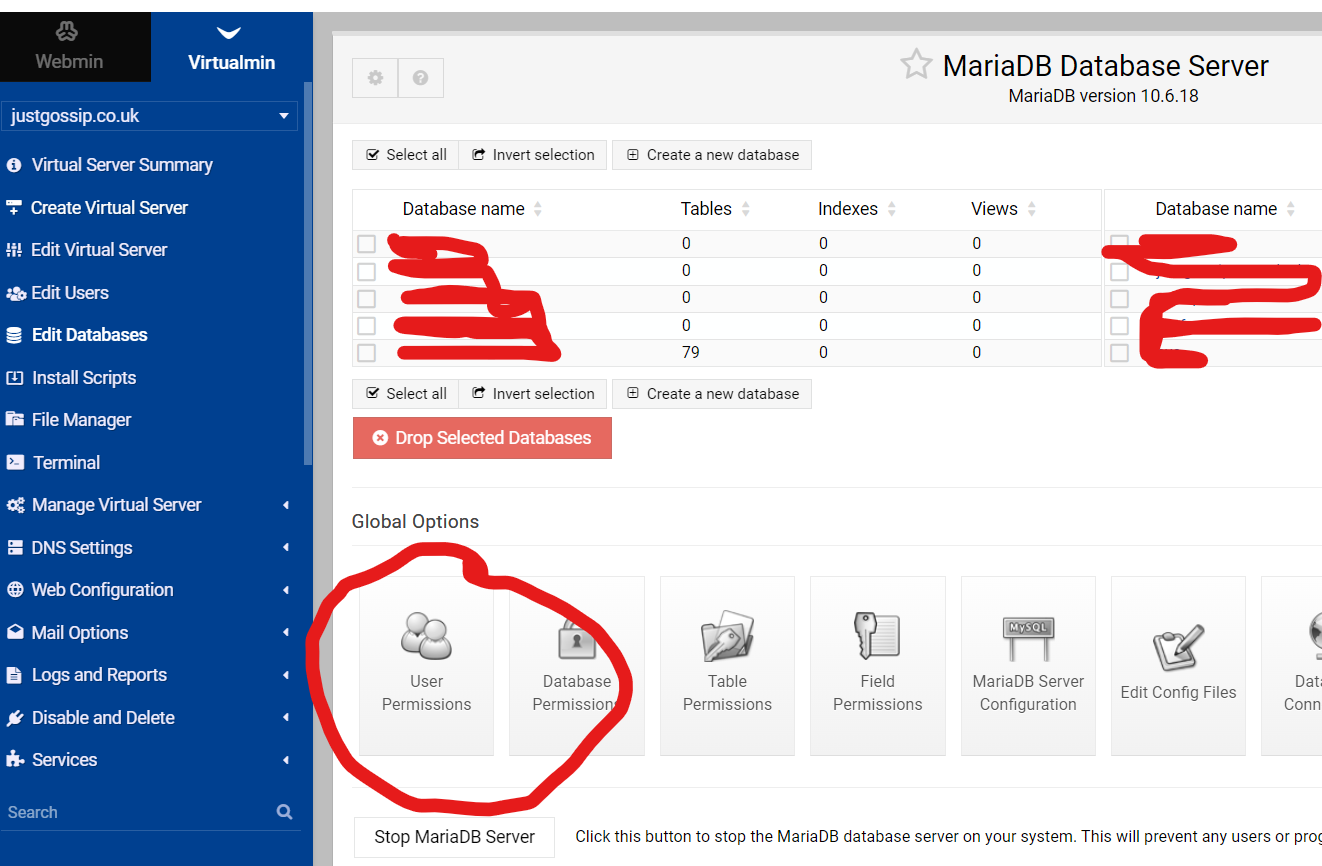 But of a hair split, virtualmin domain owners should not have the abilities to change the permissions of database users, it should be a system admin (or staff), as changing these settings could contravene company policies