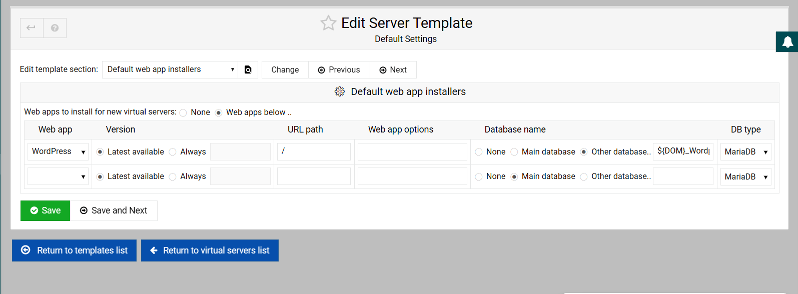 was trying to configure my virtualmin server to automate wordpress installation in to the root folder(public_html) for the new domains that will be added to the server. All the processes went well except for wordpress installation.