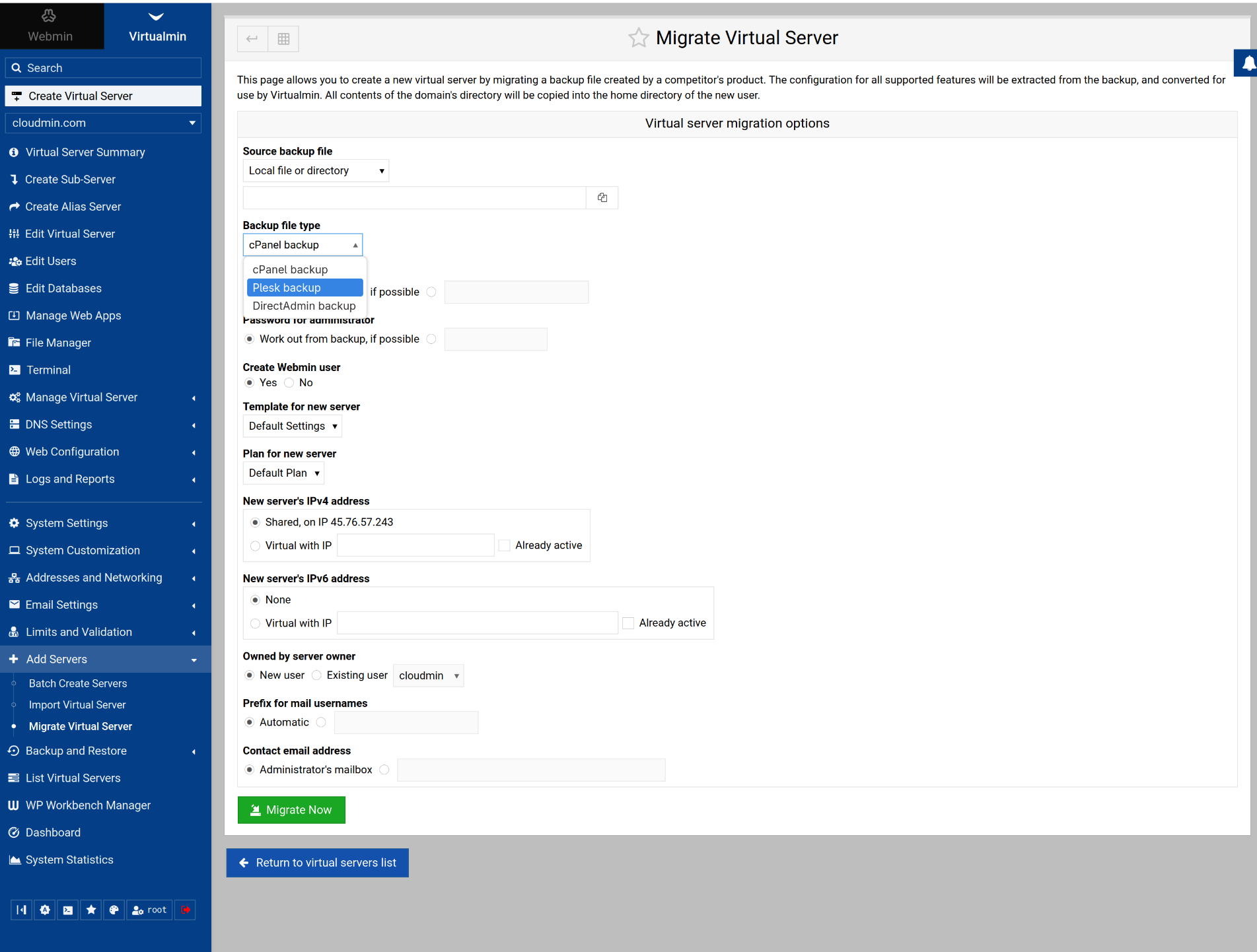 I need help in migration. How to migratethe full server backup. I have more than 130+ domains to migrate to virtualmin can any body help me no one by one solution any other
