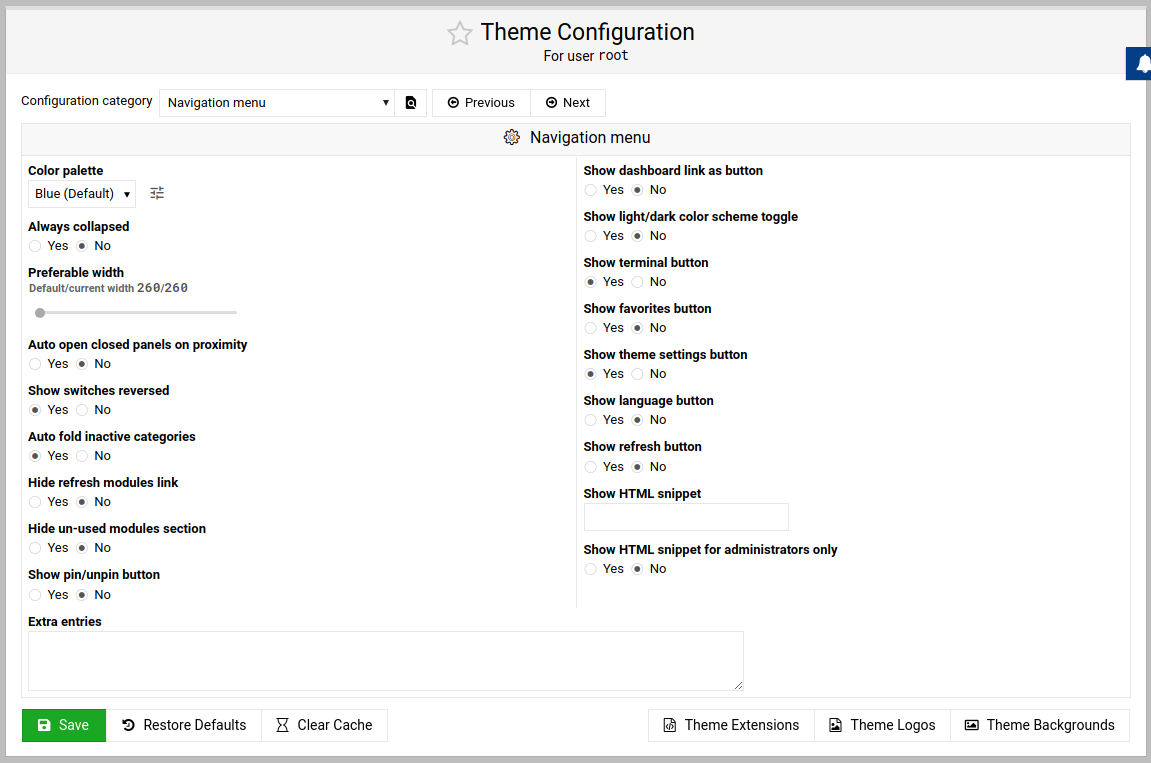 Click “Theme Extensions” in the content panel footer