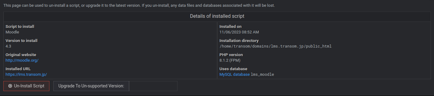Remember the script mentioned V4.3 is still installed while the Moodle version is 4.2.3. Personally, I think the script will download two versions of V4.3 like before and will not make a backup folder as before.