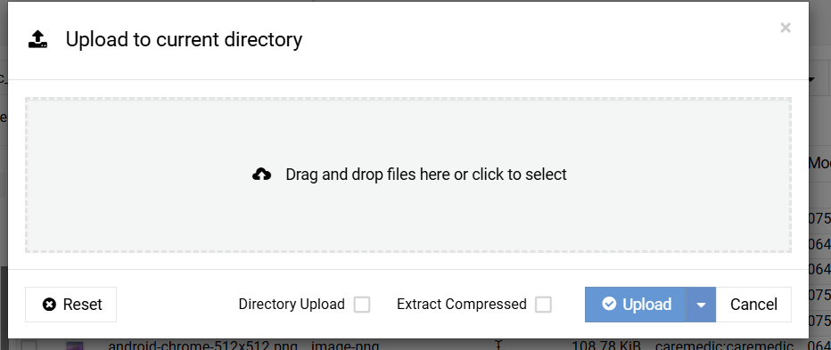 N.B virtualmin file manager doesn’t appear to support drag and drop so you can not use that either