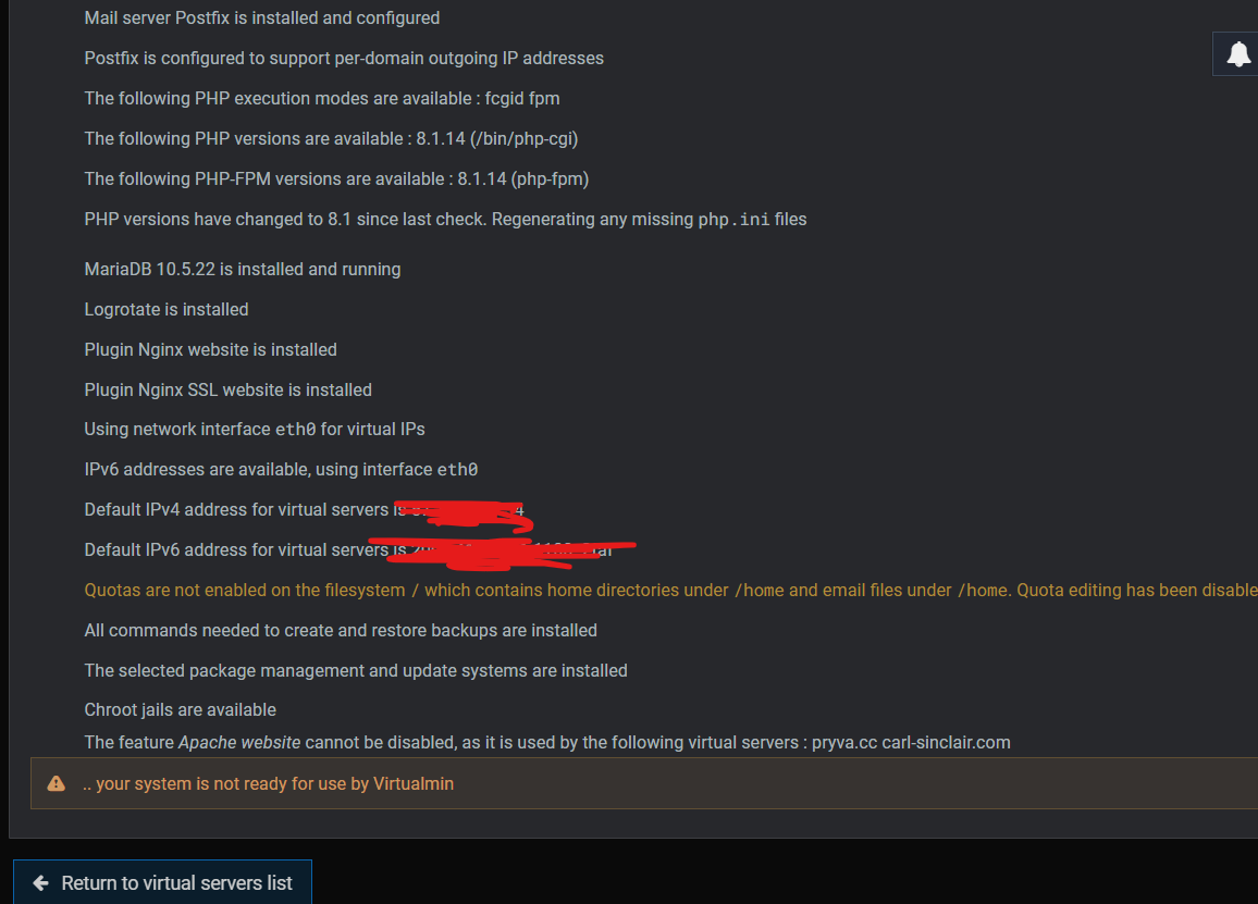 Note, you cannot have both nginx website and Apache website enabled in Features and Plugins (and you’ve found some of my explanation for why). Virtualmin does not, and will not in the future, manage both on the same system. You can use both, but Virtualmin is only ever going to know about and manage one of them directly. (You could add custom post scripts or extra files in your skel or do stuff in Server Templates to automate it, if you wanted to, but we aren’t going to build that, as it is almost always a mistake that we want nothing to do with.)