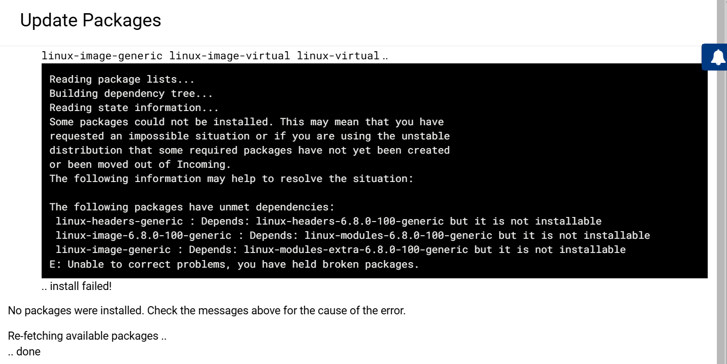This looks like a temporary issue in the Ubuntu 24.04 repositories where the 6.8.0-100 kernel packages aren’t fully available yet, so APT can’t resolve the dependencies.