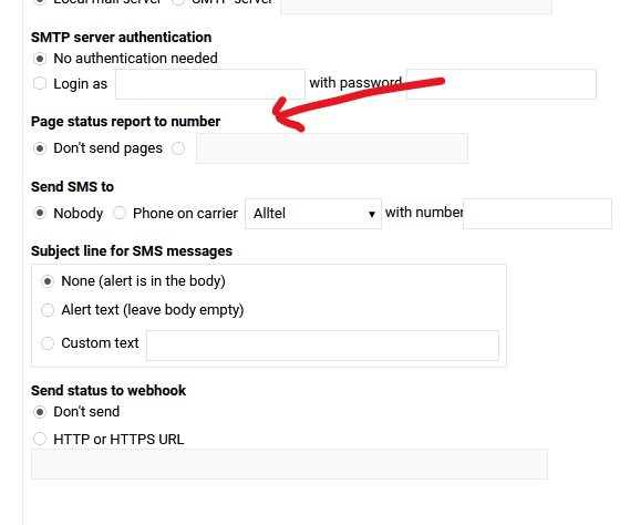 Webmin --> Tools -> System and Server Status --> Page status report to number