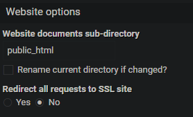 Current template for sub-servers has “Redirect all HTTP requests to HTTPS” checked. However, when I create a new sub-server, the radio button in the new server’s Website Options is set to No: