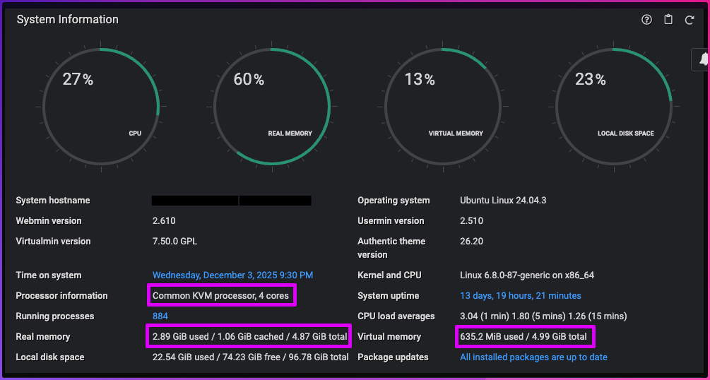 This incredible efficiency is paired with 100% uptime. The server simply never has issues. Virtualmin is a superior system by any degree.