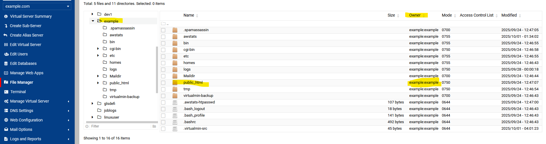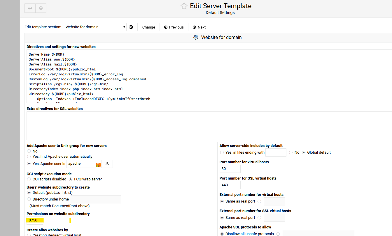 I went to “Validate Virtual Servers” and Clicked on the “Fix Permissions” tab and chose the domainname and asked it to fixthe selected server
