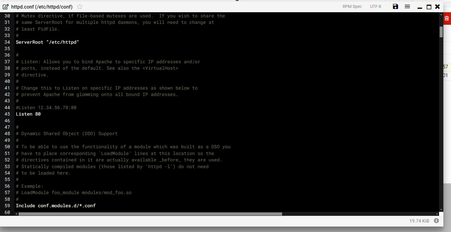 AH00526: Syntax error on line 45 of /etc/httpd/conf/httpd.conf: