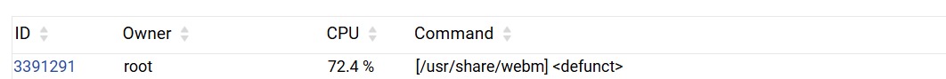 I have a process named “[/usr/share/webm]” (notice the missing “in”) that is constantly consuming around 80% CPU.