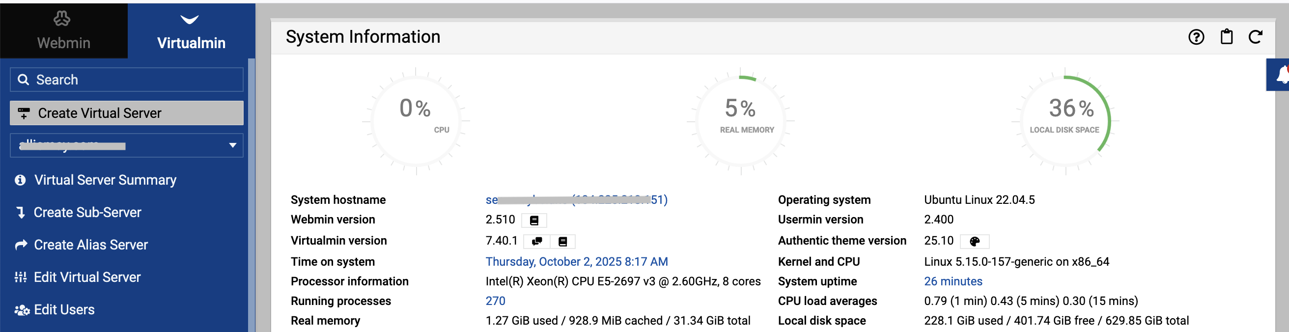 | Virtualmin version |