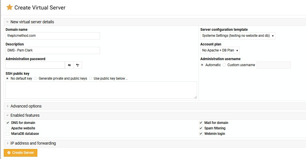 The second part to this server’s environment is we do not want to create websites or databasis, because we only want email.
