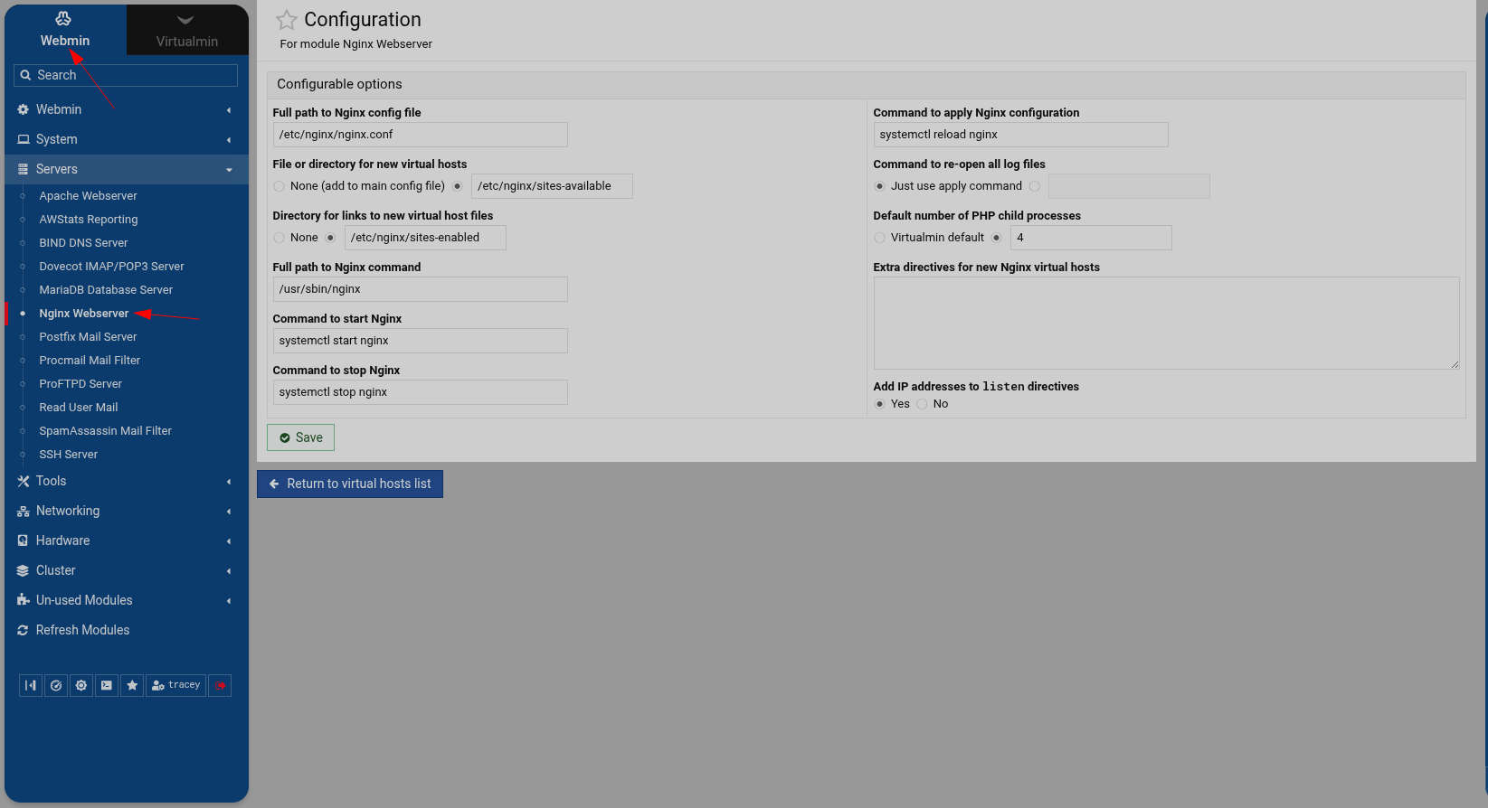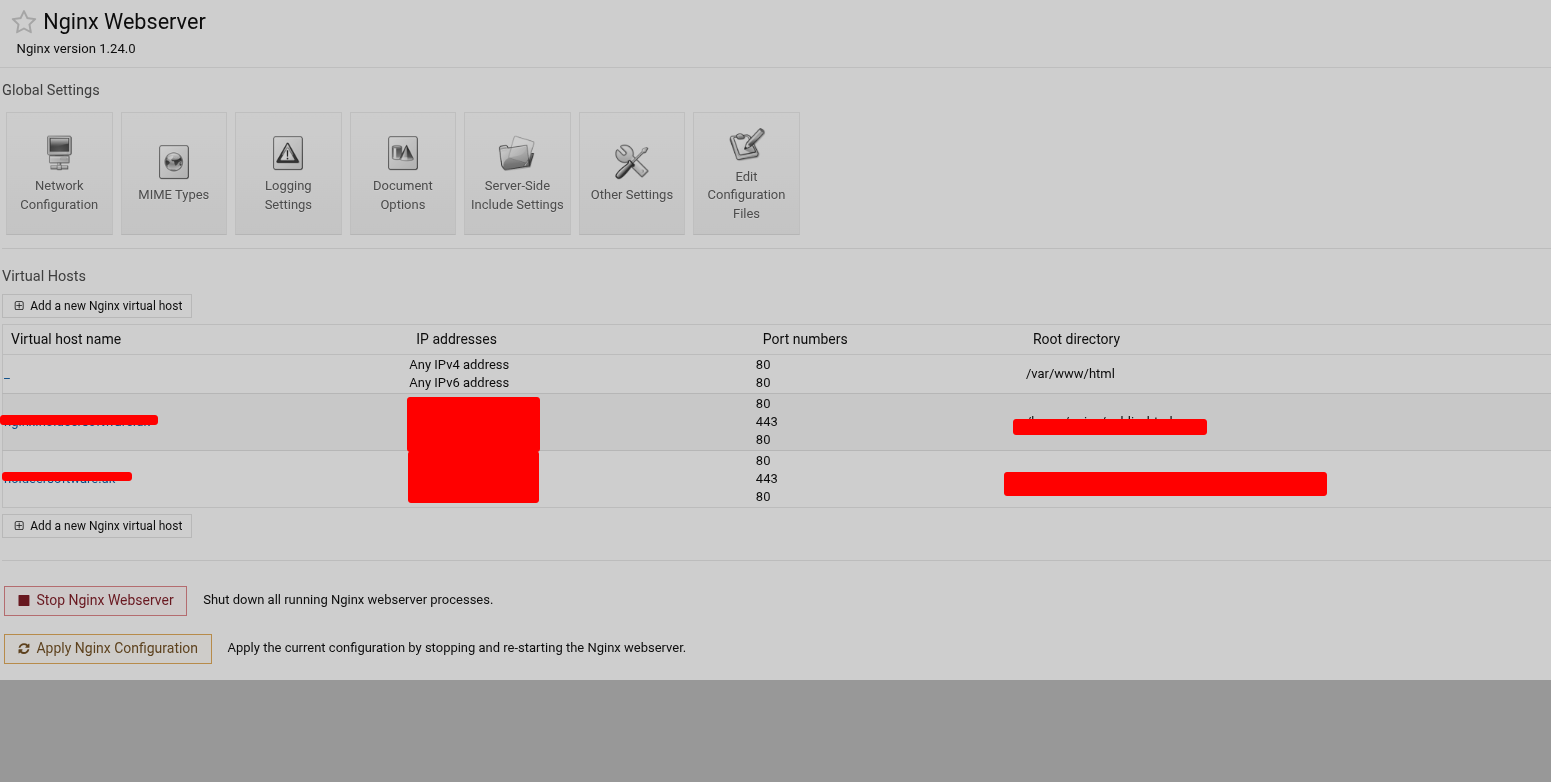 So what exactly is displaying at Webmin->Servers->Nginx Webserver ?