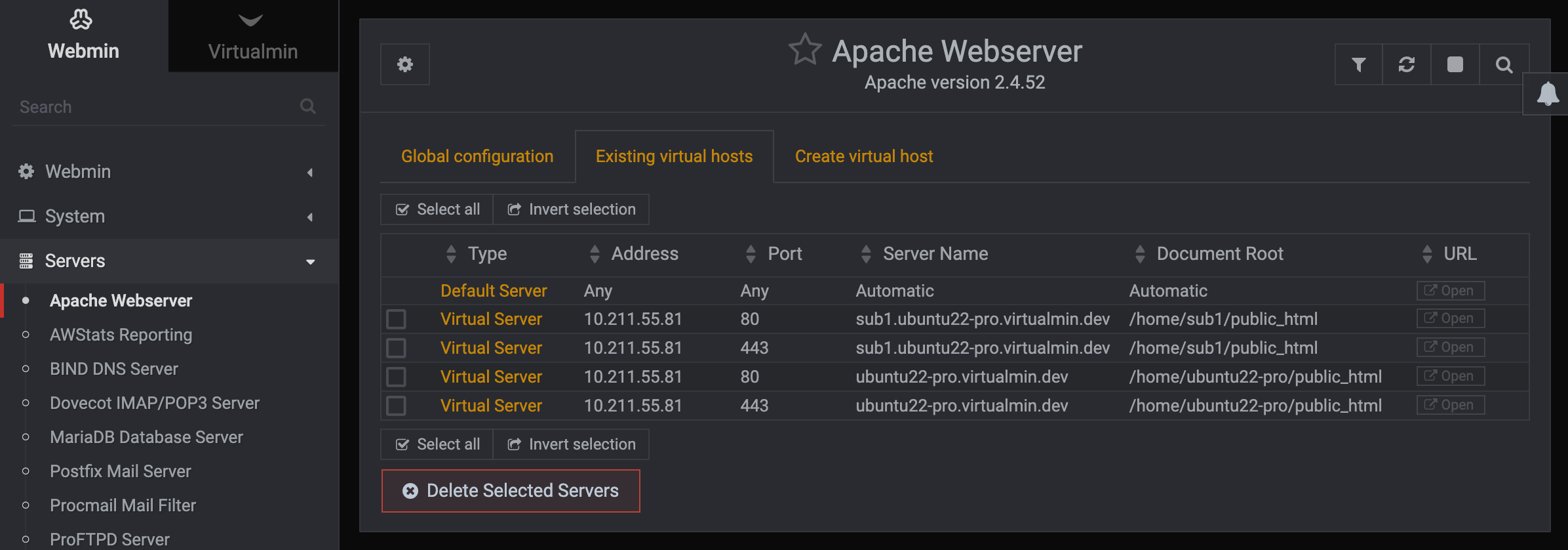 On my system it’s a UI that allows you to start/stop, and edit virtual server options along with deleting them. All that is missing is the ability to disable the virtual host