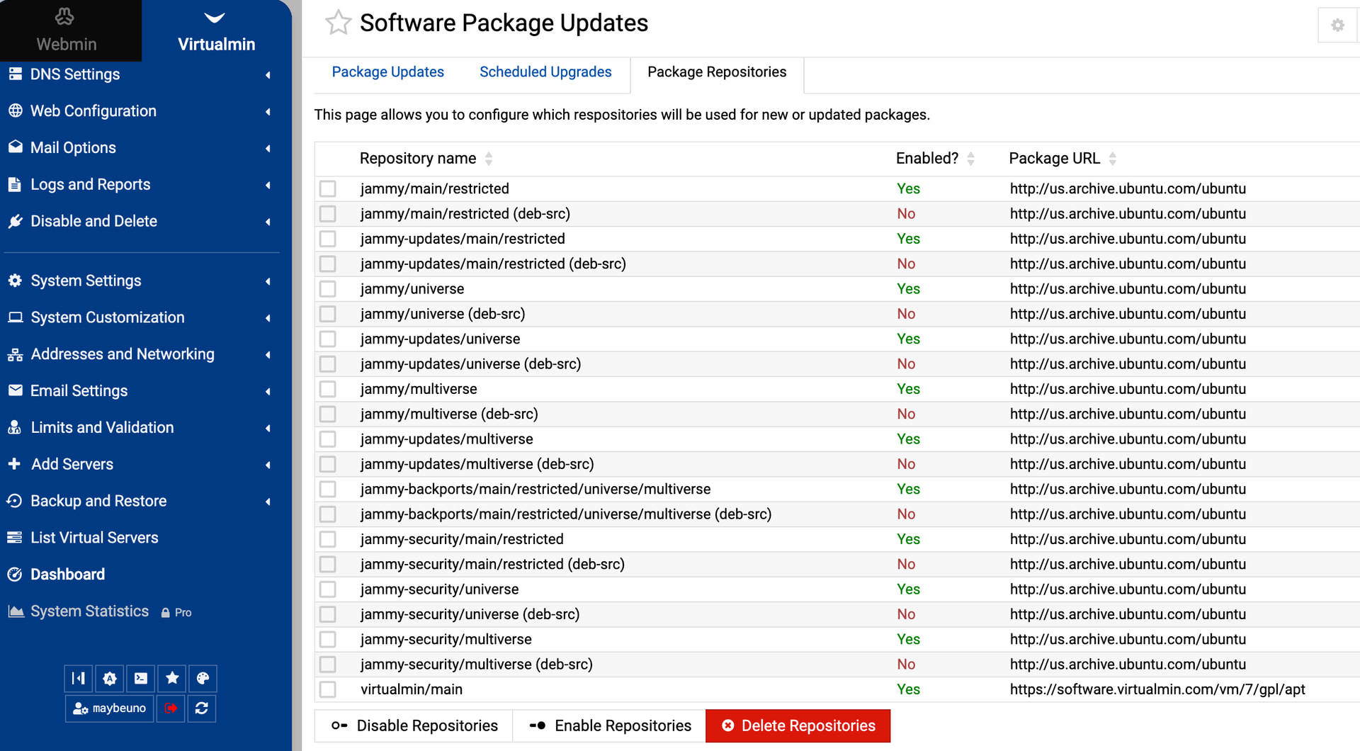 But, if you want, you could change to the new repos with this command: sudo virtualmin setup-repos .