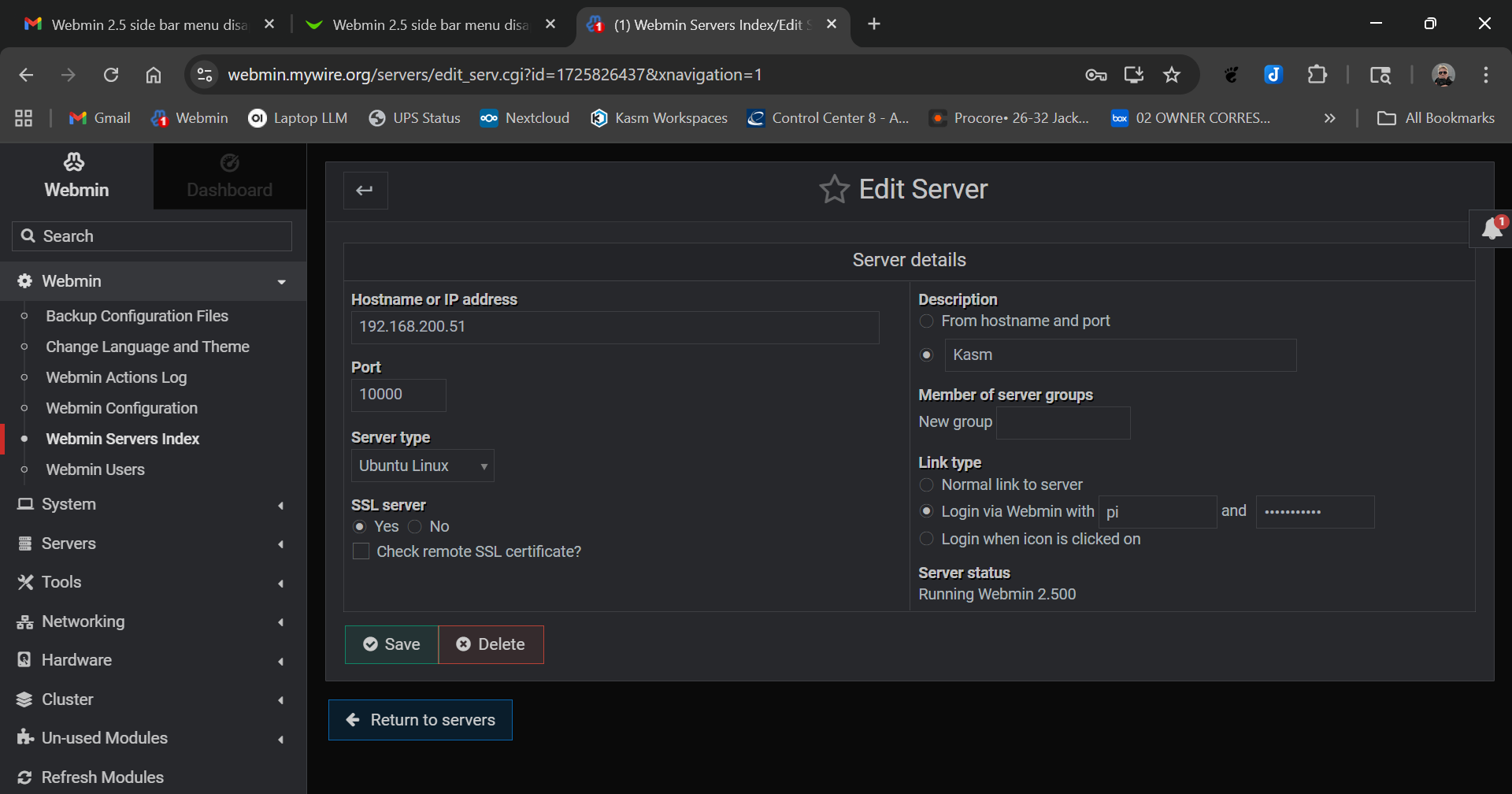 I’ve done a little more tinkering. Sorry for the delay. If I go directly to the machine then everything seems to work just fine. If I go through Webmin Server Index then things are wonky as the screen shots I sent yesterday showed. No difference with Cognito/Incognito or forcing a refresh.
