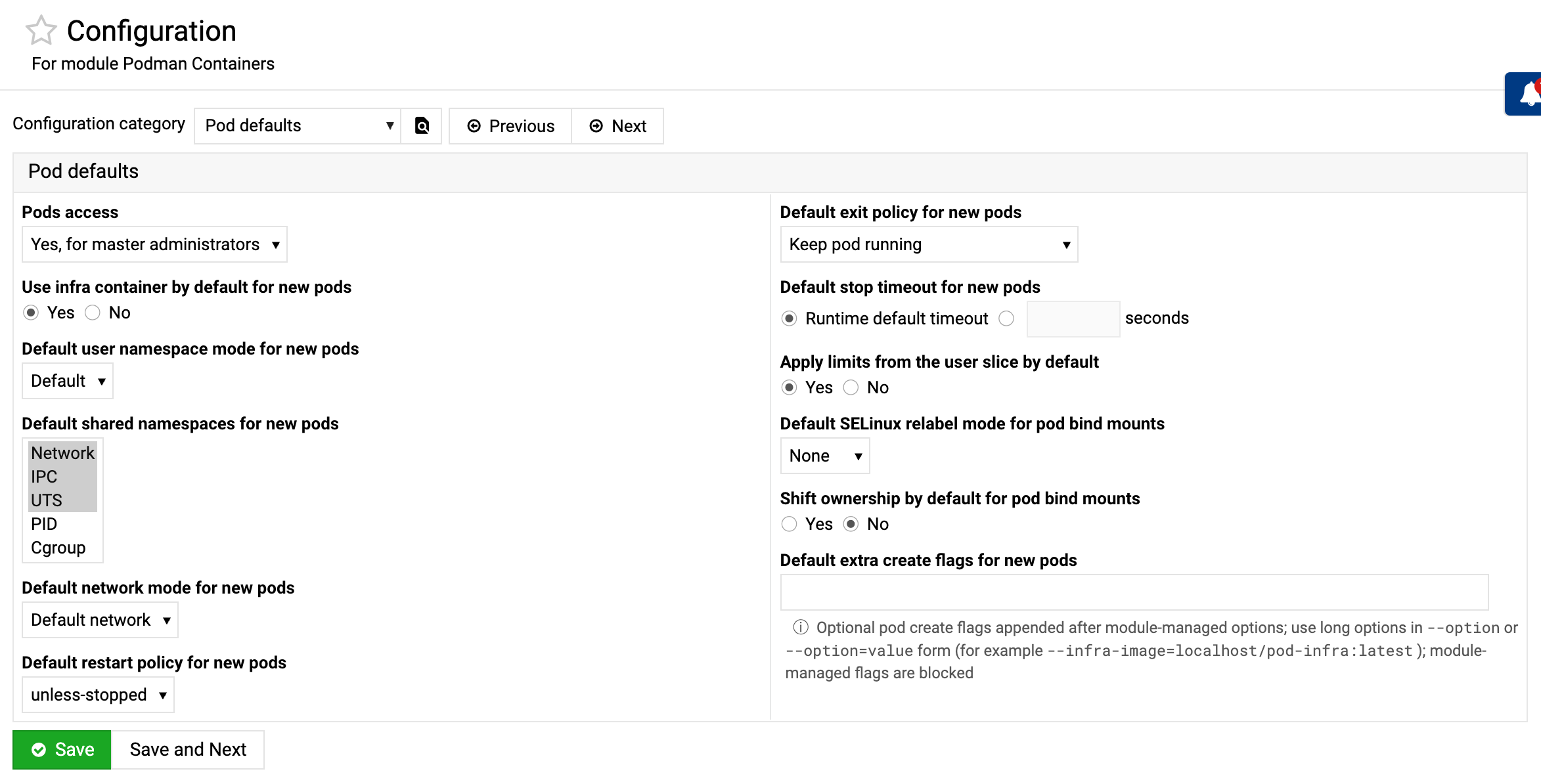- Separate pod access policy for master administrators, all users, or disabled