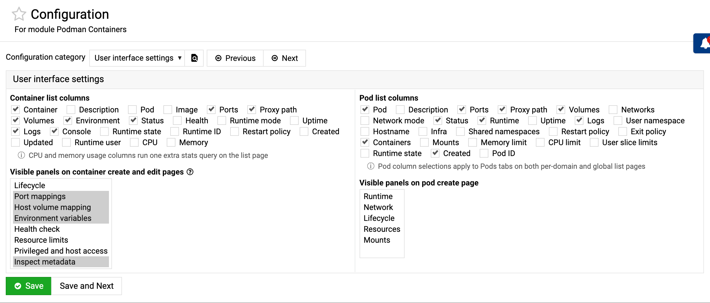 - Configurable visible panels for container and pod create workflows
