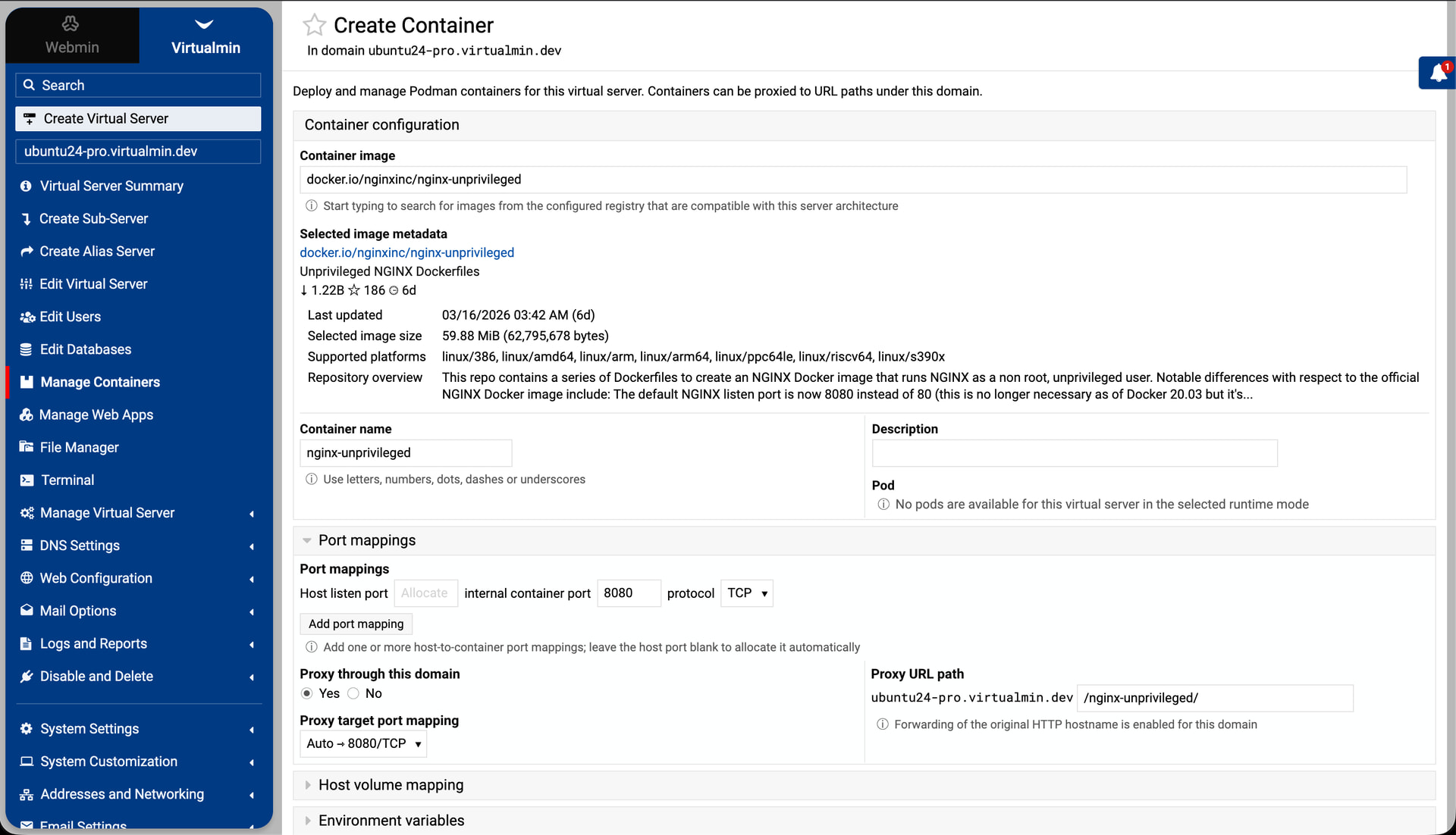 Virtualmin Podman Plugin