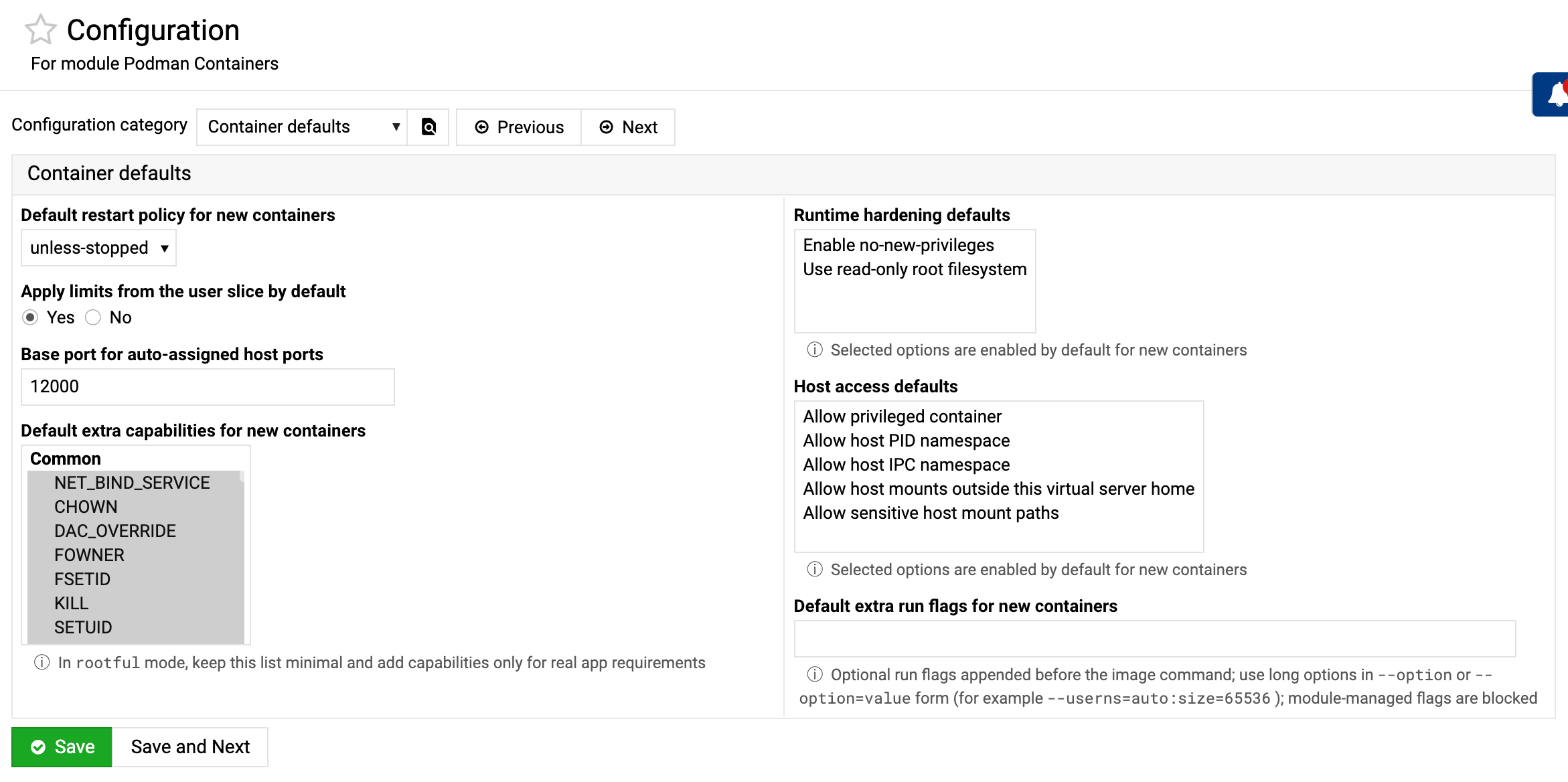 kept hidden while still applying the configured default. Separate Podman