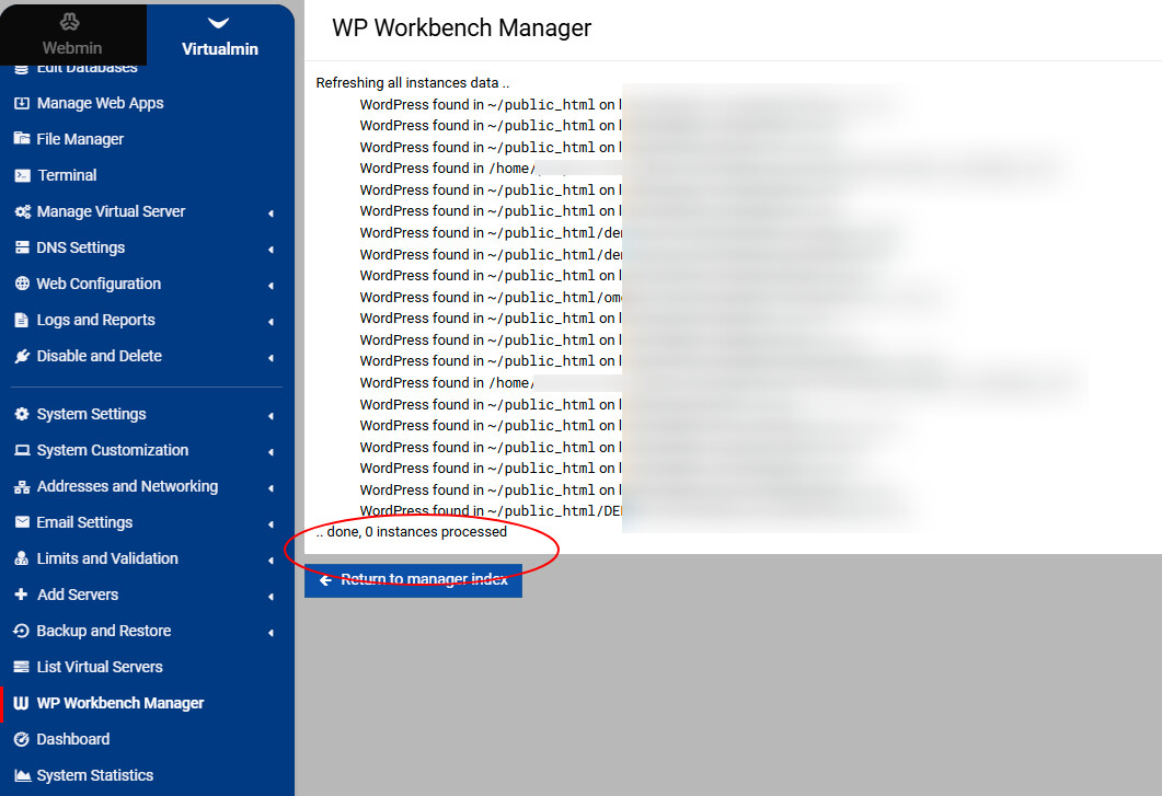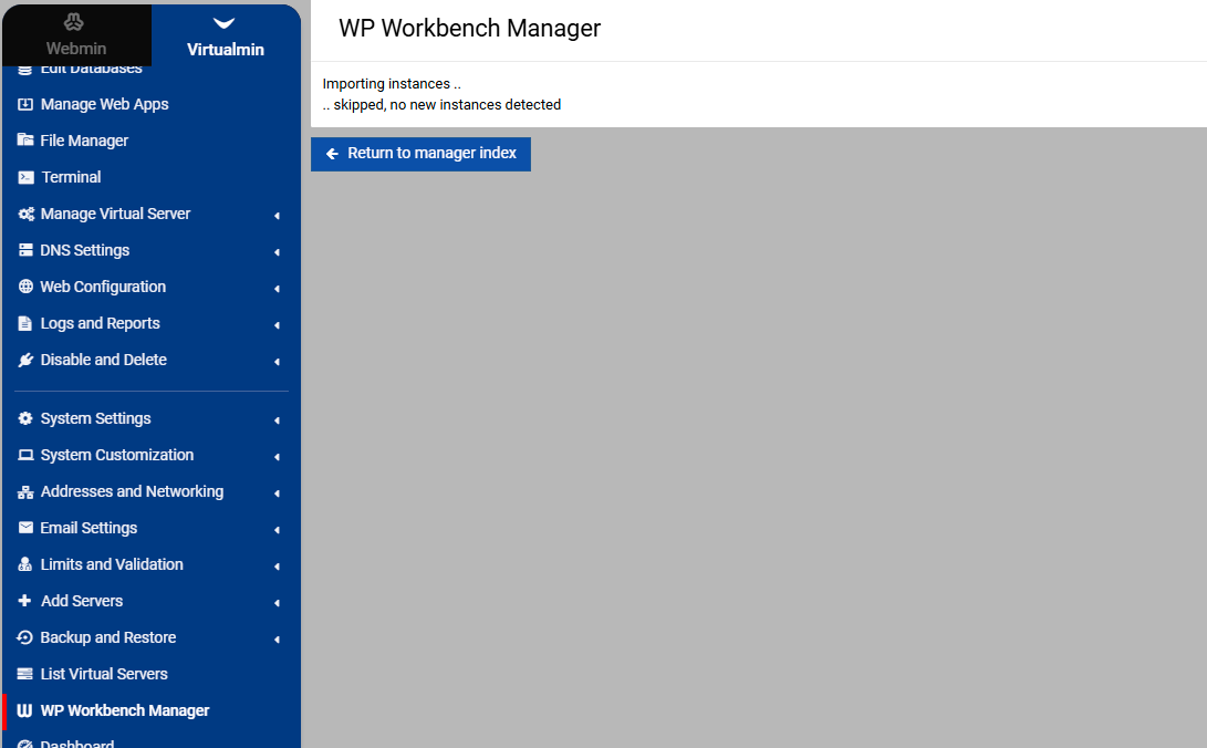 I am running latest versions of webmin/virtualmin, and wp workbench