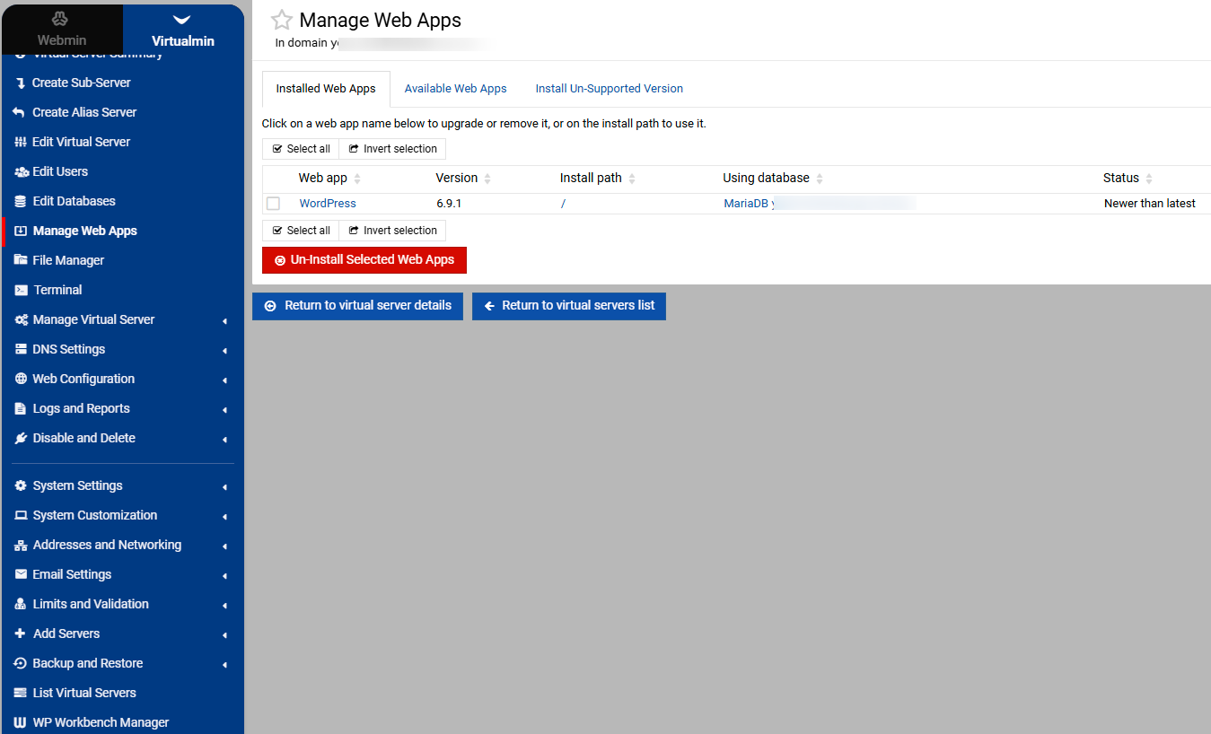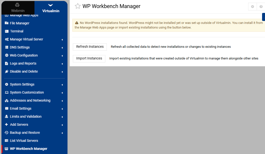 How do i get virtualmin to recognise the WP installations?